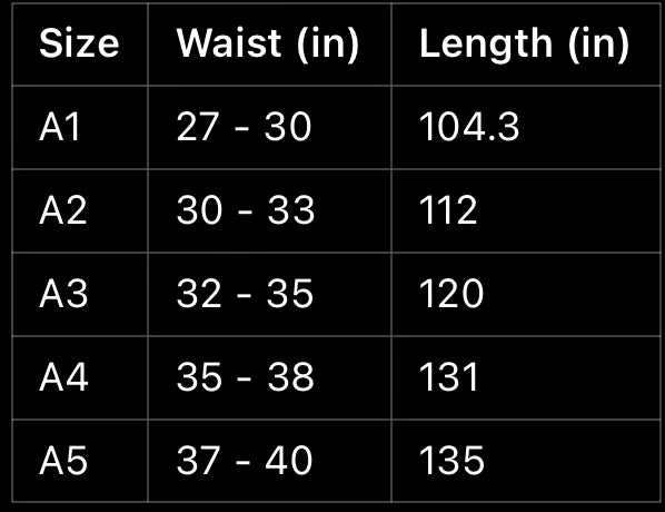 **Note: Belt length may deviate minimally from what is noted on the chart